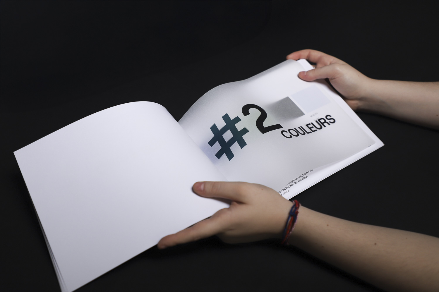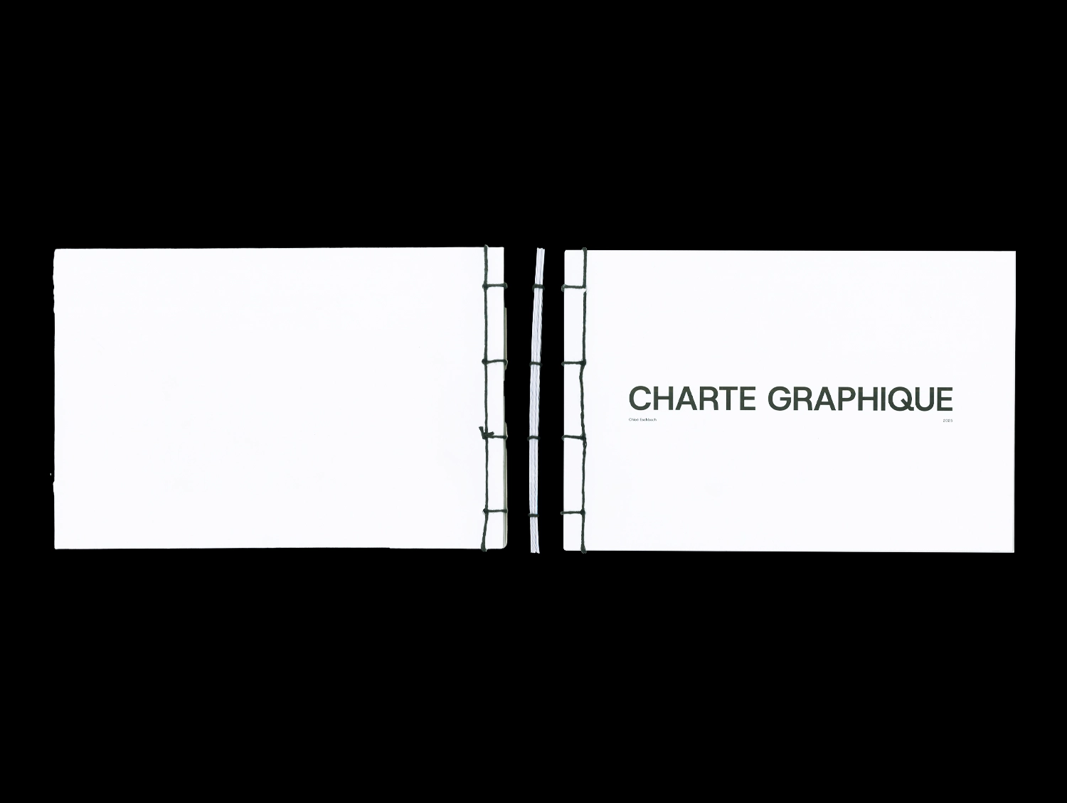 Pour la reliure, j’ai choisi une reliure japonaise. Ce choix est à la fois esthétique et conceptuel : son dessin fait écho à la notion de grille dans laquelle s’inscrit mon logotype. Elle apporte également une solidité et une dimension pérenne à l’objet.