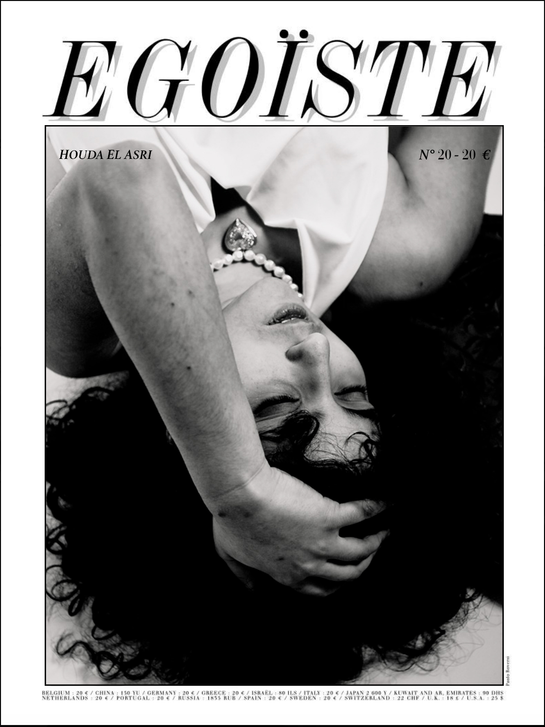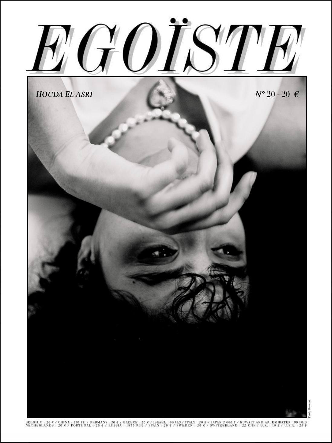 Enfin, pour la dernière couverture, le magazine Égoïste se distingue par son esthétique en noir et blanc et ses photographies très élégantes. J’ai ainsi mis en scène Houda sur un fond blanc, afin d’exprimer l’image d’une femme plus mature et affirmée.